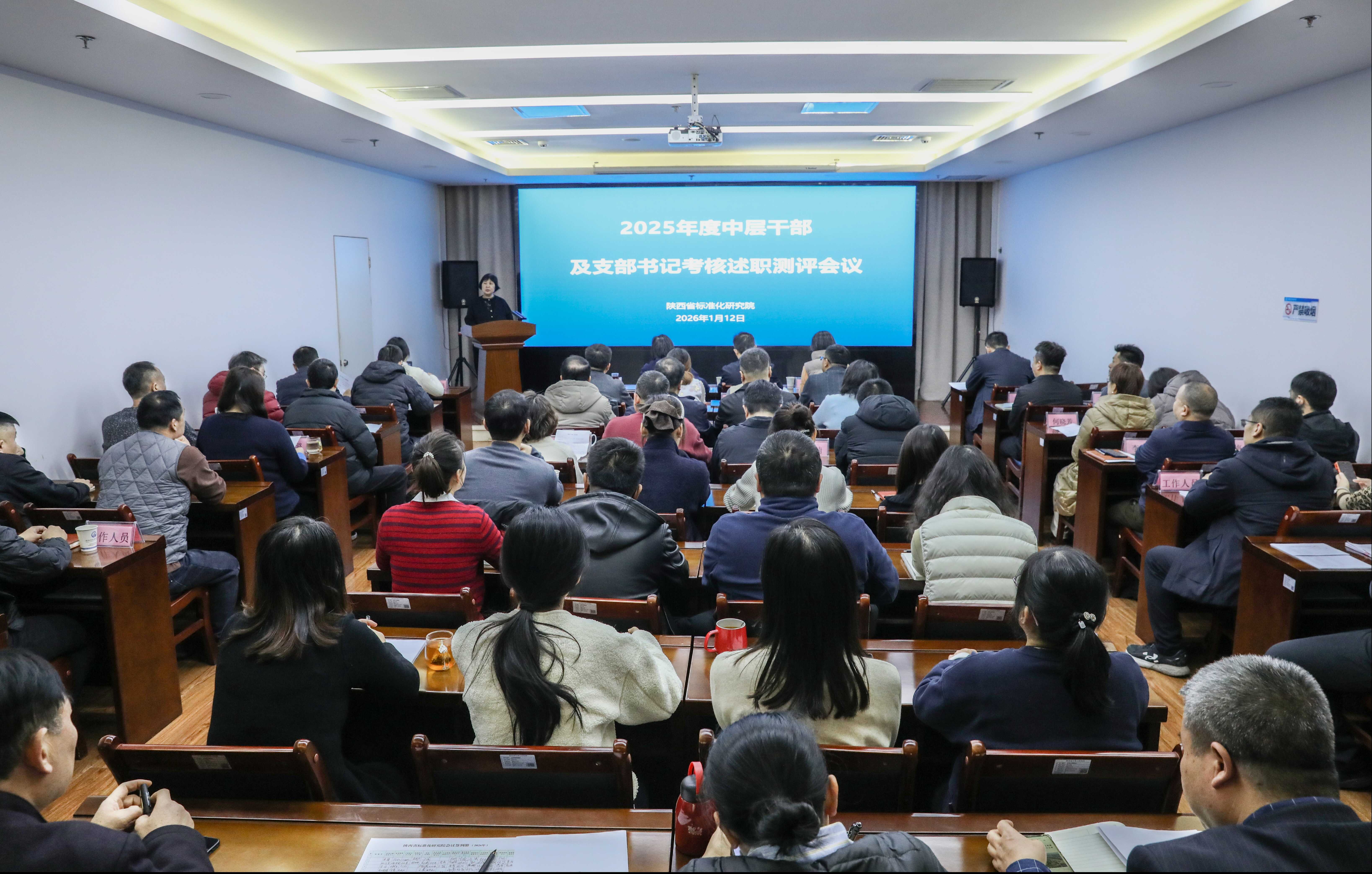 1月12日,省标准化院召开2025年度中层干部及党支部书记考核述职测评会。会议以“总结成效、查摆不足、交流经验、凝聚共识”为主题,全面回顾2025年各项工作推进情况,系统检验年度目标任务完成实效,进一步强化干部队伍建设水平与基层党建引领作用。院全体干部职工参加会议。