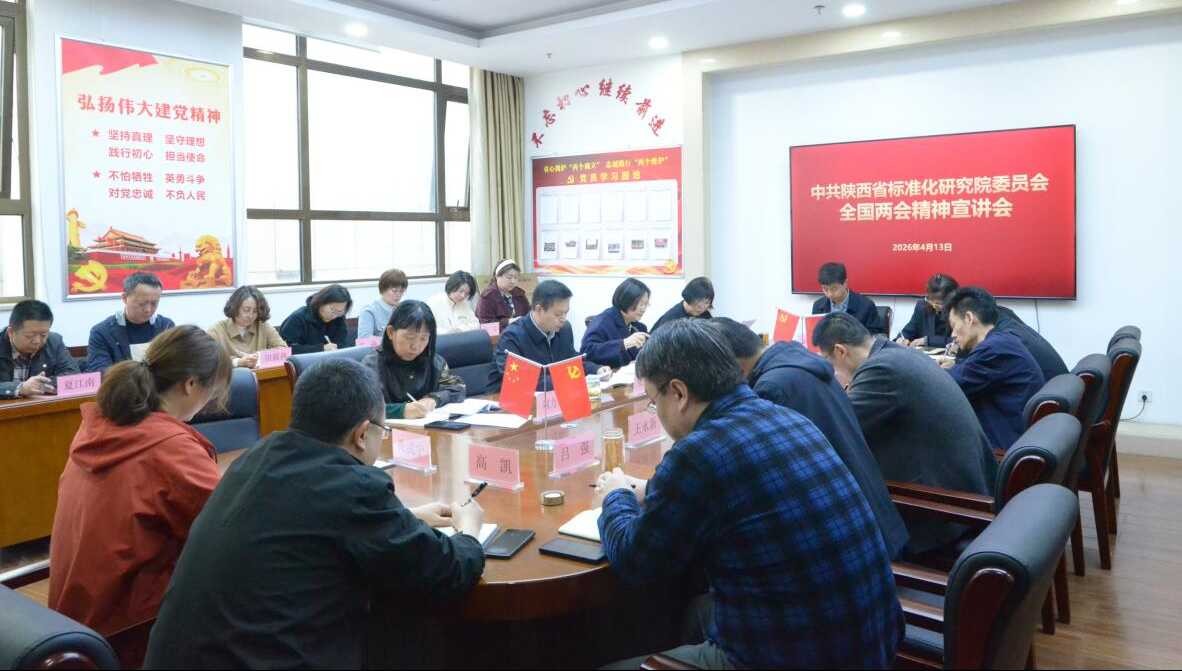 会议要求,一要深化学习宣传。依托“三会一课”、主题党日等载体,开展专题学习研讨,用好线上线下阵地,全面准确阐释两会精神,讲透精神实质,凝聚全院奋进合力。二要服务发展大局。紧扣标准化中心工作,聚焦培育新质生产力、促进产业提质增效、推动科技创新与成果转化,在标准化工作一线攻坚克难,为陕西高质量发展和争做西部示范提供标准支撑。三要锤炼过硬作风。持续深化作风建设,以正确政绩观引领工作,紧盯年度目标任务狠抓落实,确保“十五五”实现良好开局,为谱写陕西新篇贡献标准化力量。