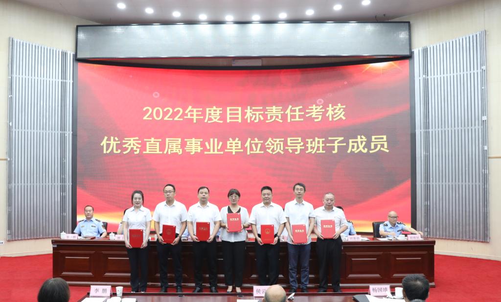 会上,为2022年度目标责任考核优秀单位和优秀个人代表分别颁发奖牌、荣誉证书和奖章。