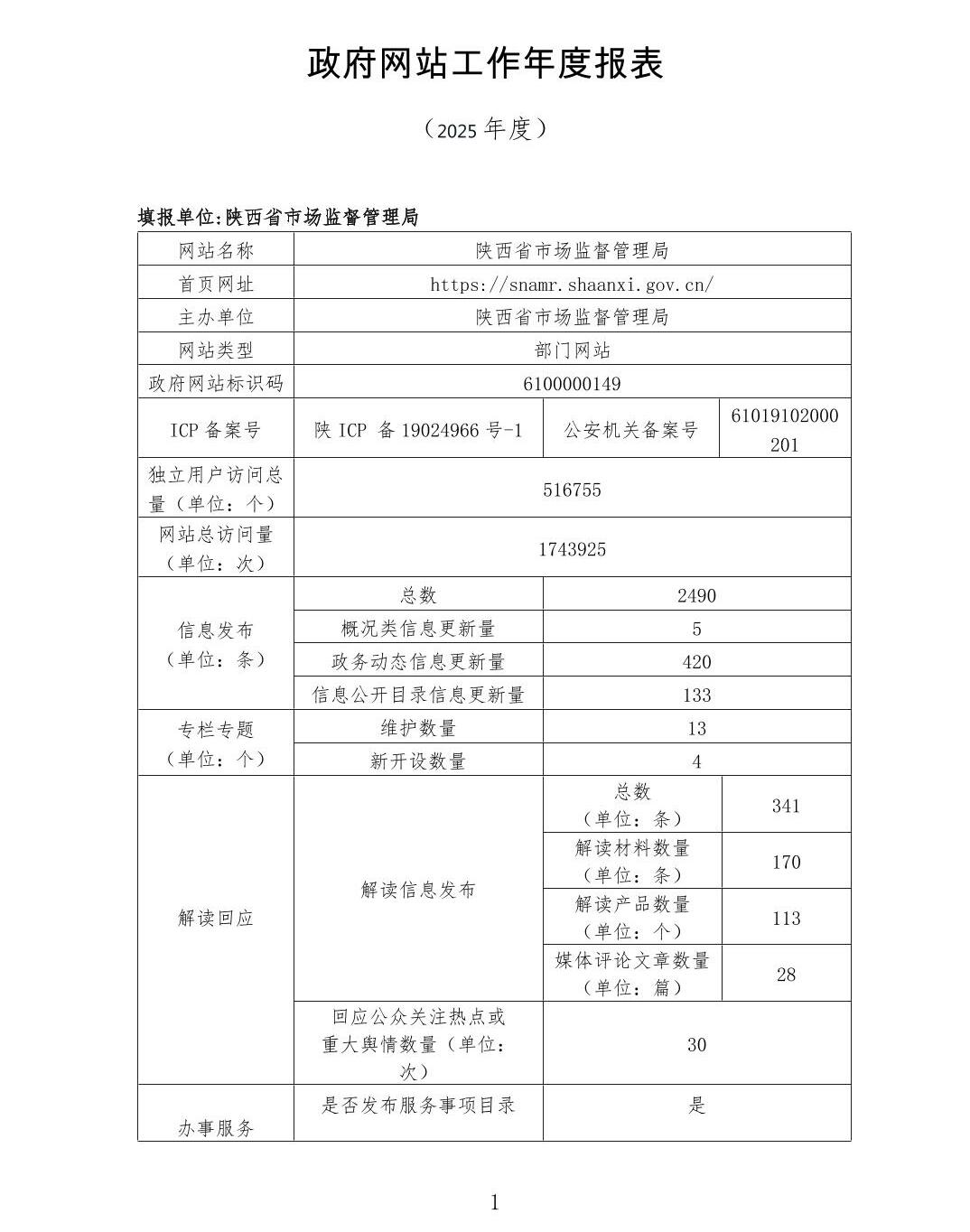 2025年陕西省市场监督管理局网站工作年度报表