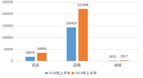 图1 2018年上半年与2019年上半年受理量对比图。