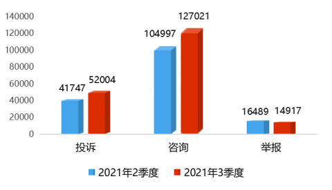 图1 2021年3季度与2021年2季度投诉咨询举报量对比图